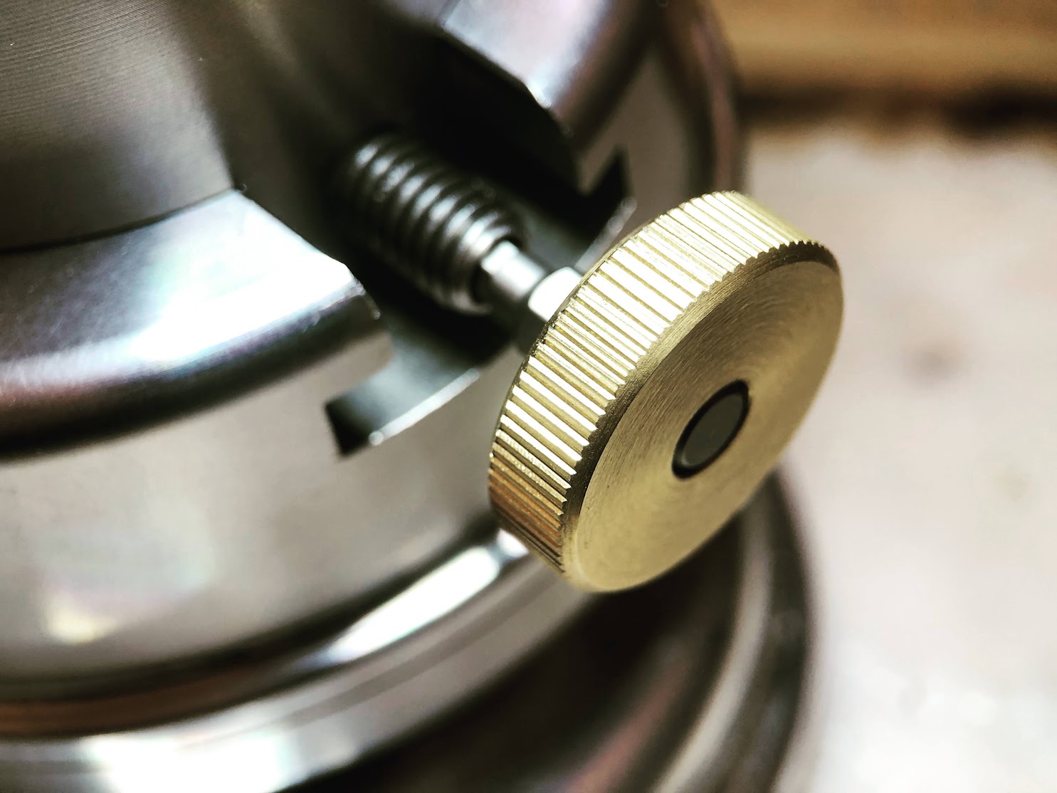 On photograph: Lindsay™ Palm Control Vise. Brass hex tool.